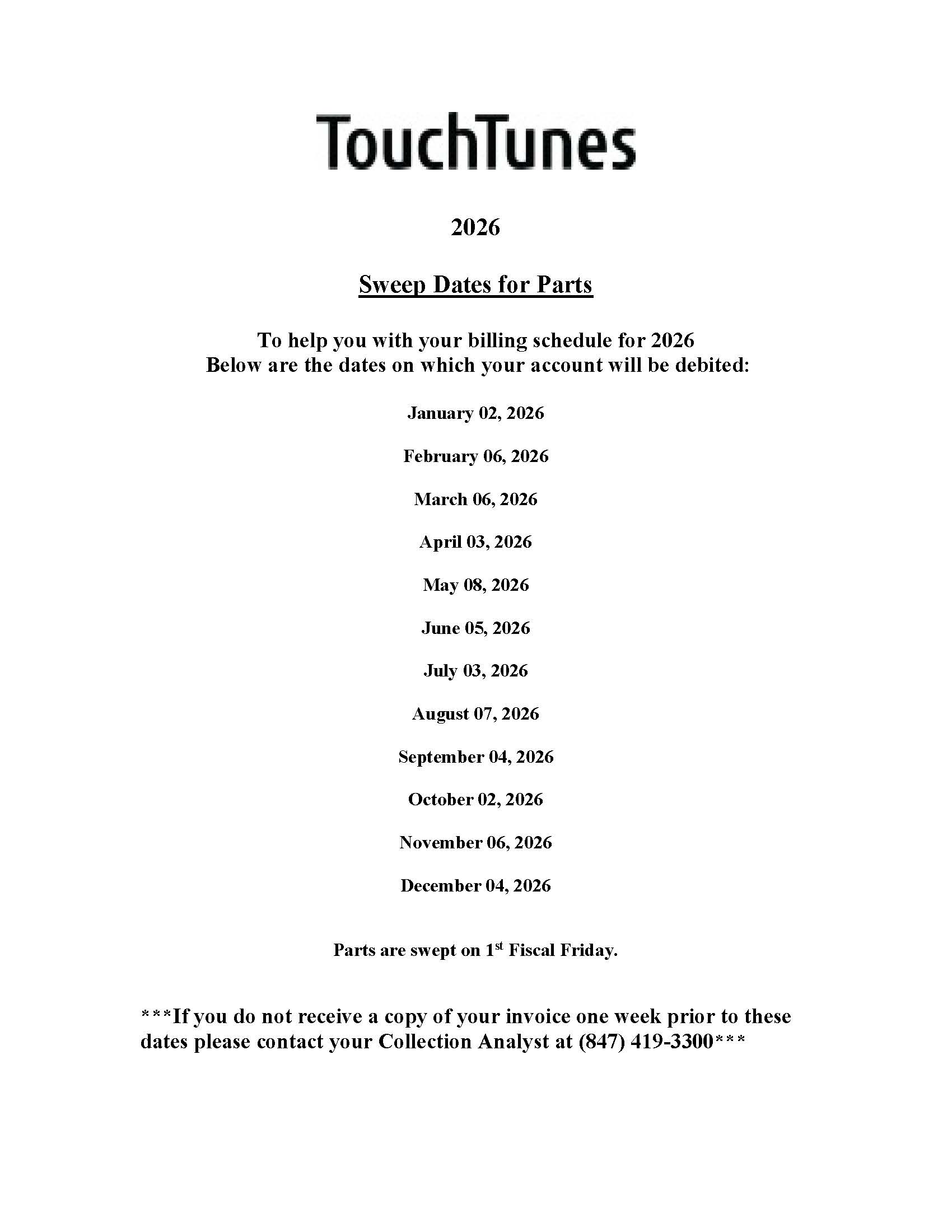 2026 Sweep Dates for Parts